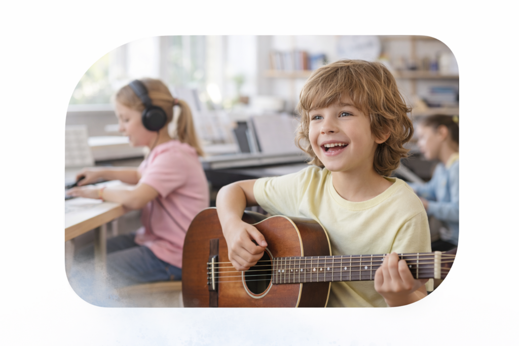 Con la ayuda de nuestros personajes Solfa y Octavo, acompañamos a cada alumno en un viaje donde no solo aprenden a tocar música, sino a sentirla, vivirla y compartirla.