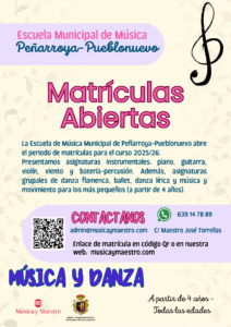 Matrículas abiertas en la Escuela Municipal de Música y Danza de Peñarroya-Pueblonuevo – Curso 2025/26 La Escuela Municipal de Música de Peñarroya-Pueblonuevo abre el plazo