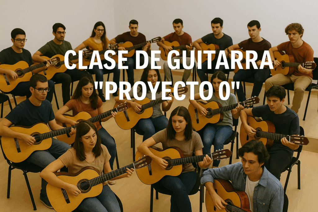 Taller de iniciación a la guitarra pensado para alumnos sin conocimientos previos. Aprenden sus primeros acordes, acompañamientos sencillos y una canción completa.